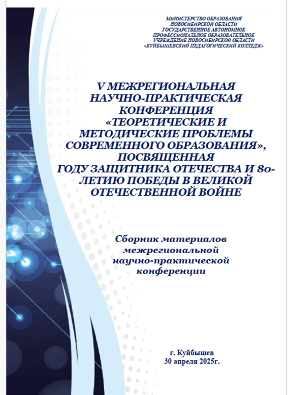 30 апреля 2025 года подведены итоги V Межрегиональной научно-практической конференции «Теоретические и методические проблемы современного образования», посвященной Году защитника Отечества и 80-летию Победы в Великой Отечественной войне, организованной Куйбышевским педагогическим колледжем. Материалы участников конференции помещены в сборнике. В материалах отражен практический опыт участников из разных образовательных организаций Новосибирской области и других регионов. Сборник адресован педагогам и преподавателям образовательных организаций, обучающимся СПО и ВПО.